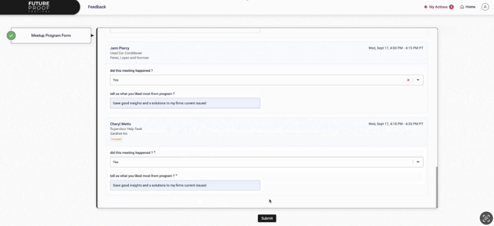 - Once you complete the survey, you’ll be able to download a summary of your meetings, including: